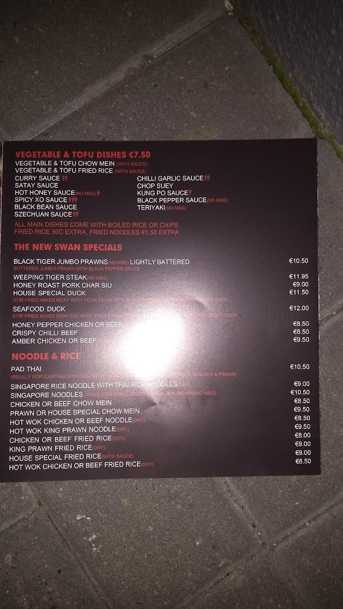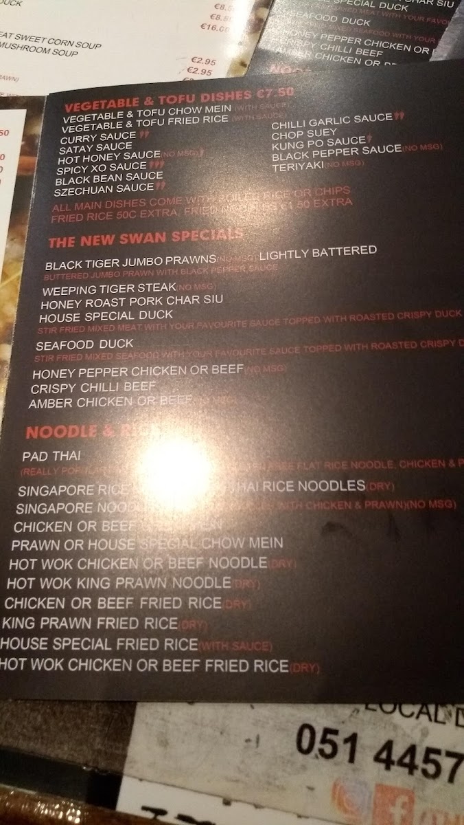 The menu at New Swan Chinese offers a delightful variety of traditional Chinese dishes, perfect for anyone craving a hearty and flavorful meal. Starting with appetizers, the Hot and Sour Soup stands out as a bold choice, offering a perfect balance of spice and tanginess that sets the tone for the meal ahead. For those looking for a light yet satisfying option, the Chicken Satay Skewers provide a tender and aromatic experience, with a rich peanut sauce that adds depth to the dish. The main courses are equally diverse, with options like crispy spring rolls, tender duck dishes, and classic stir-fries. The variety of meat and vegetarian options ensures that all tastes are well catered for. Whether you’re in the mood for something spicy, sweet, or savory, New Swan Chinese’s menu offers something to suit every palate, making it an excellent choice for anyone looking for an authentic Chinese dining experience.